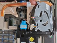 Lift the fan with your finger and slide it out towards the inside of the laptop.